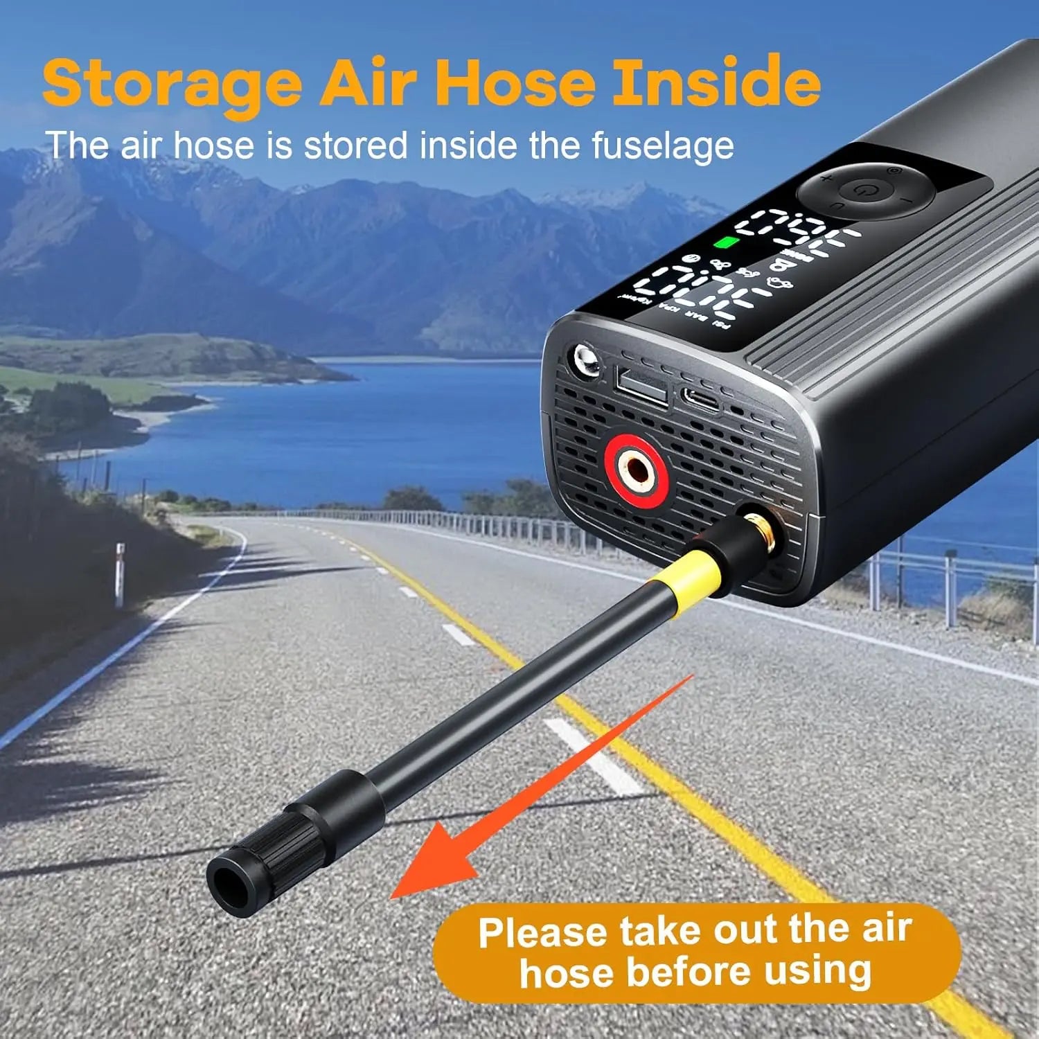 - ๐๐๐ข๐ฅ๐ฒ ๐๐๐๐๐ฌ๐ฌ๐ข๐ญ๐ฒ - With this cordless tire inflator, you don't have to look around for a place to fill up your tires, saving time and money. When traveling by car or camping, this tire inflator portable air compressor can be used as a flashlight for emergencies in the dark. It can also be used to inflate bicycle tires, basketballs or soccer balls, and swimming rings, which is both safe and convenient.