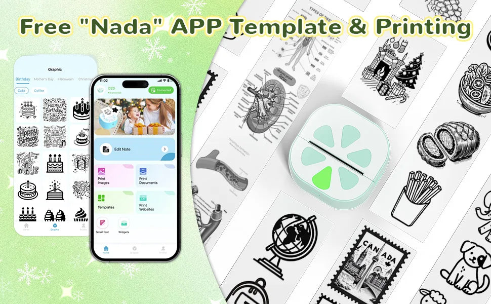 Easy to Use: Compatible with iOS and Android devices. By connecting to the Nada Print APP, you can access a wide range of templates and materials for easy and efficient printing.