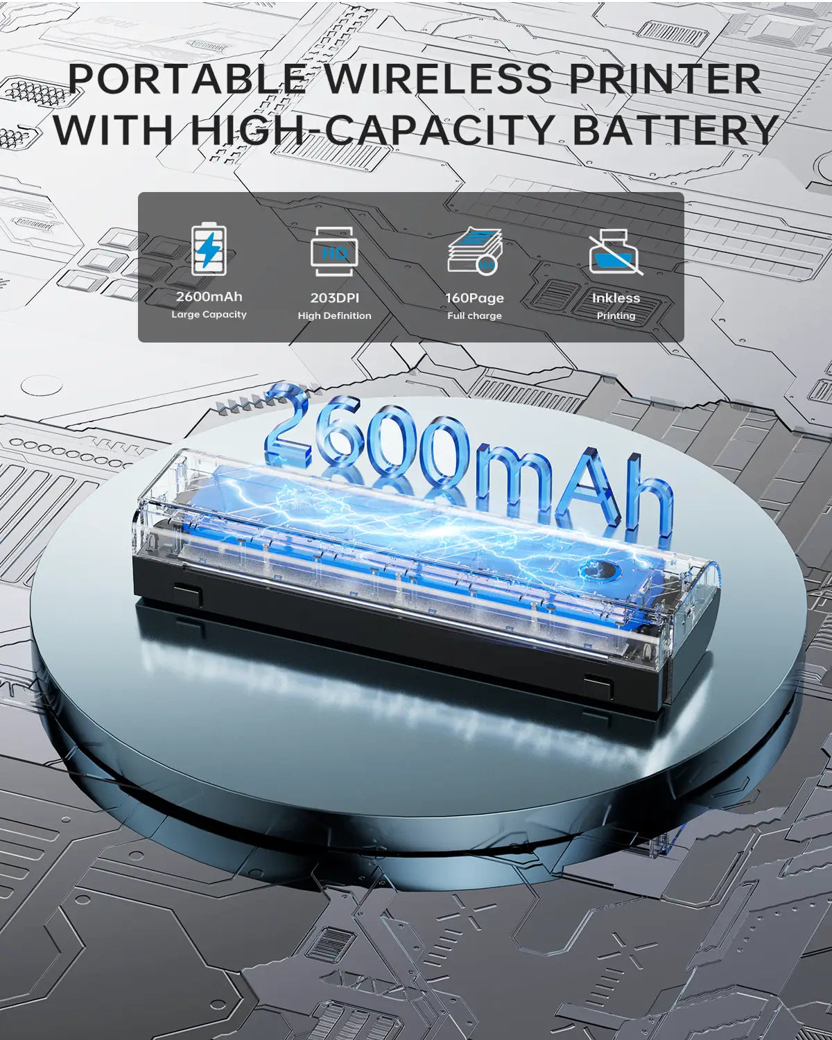 Printing Efficiency: 1200mAh battery capacity, up to 140 pages of continuous printing after charging