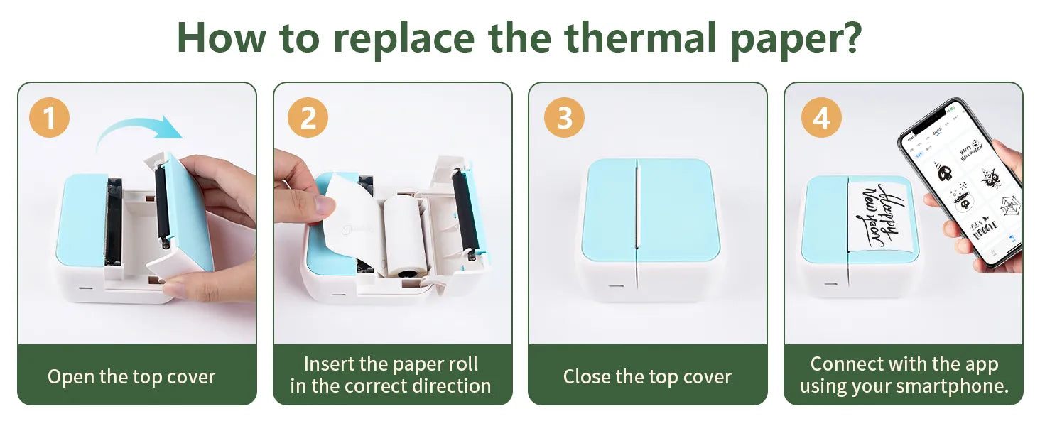 Inkless Printing: Load paper in just 3 seconds and start printing instantly—no mess, no hassle.